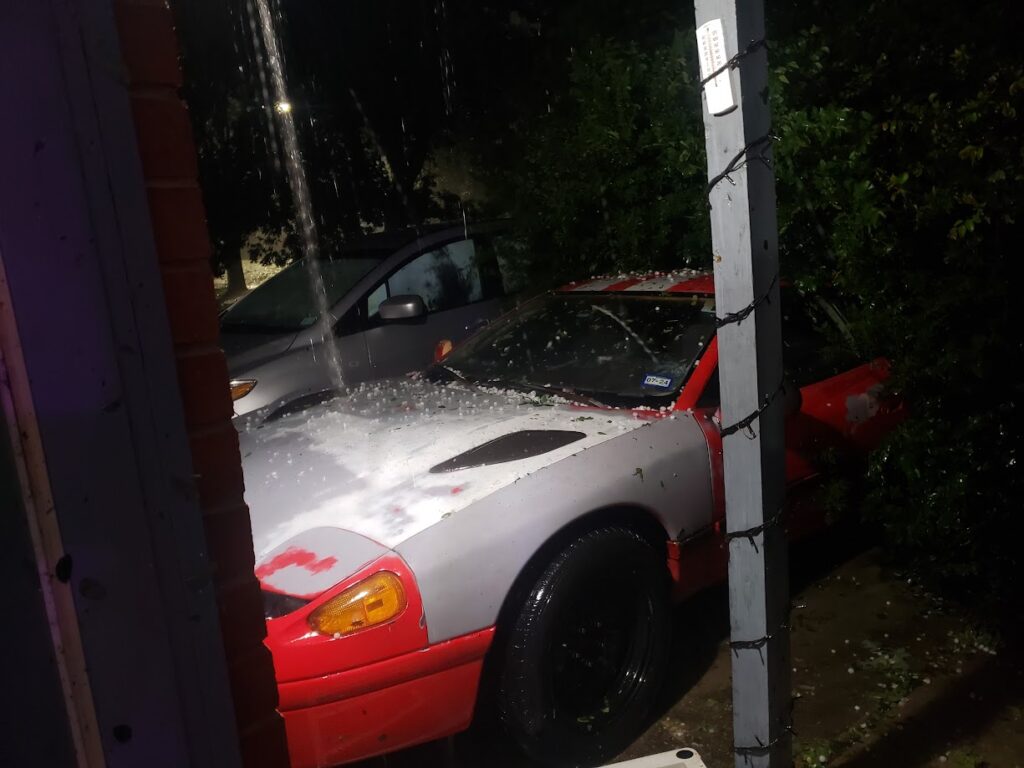 On May 9th, San Marcos has a bad hailstorm with straight line winds (which I learned about this day). The tree in my front yard fell on top of all 3 of my cars but the only car that really sustained any damage was my daily driver, it’s pinned under that tree parked behind the Stealth in this these photos. My windshield was completely smashed which led to a few more dents but the Stealth was in really good shape, no broken glass and no dented steel.